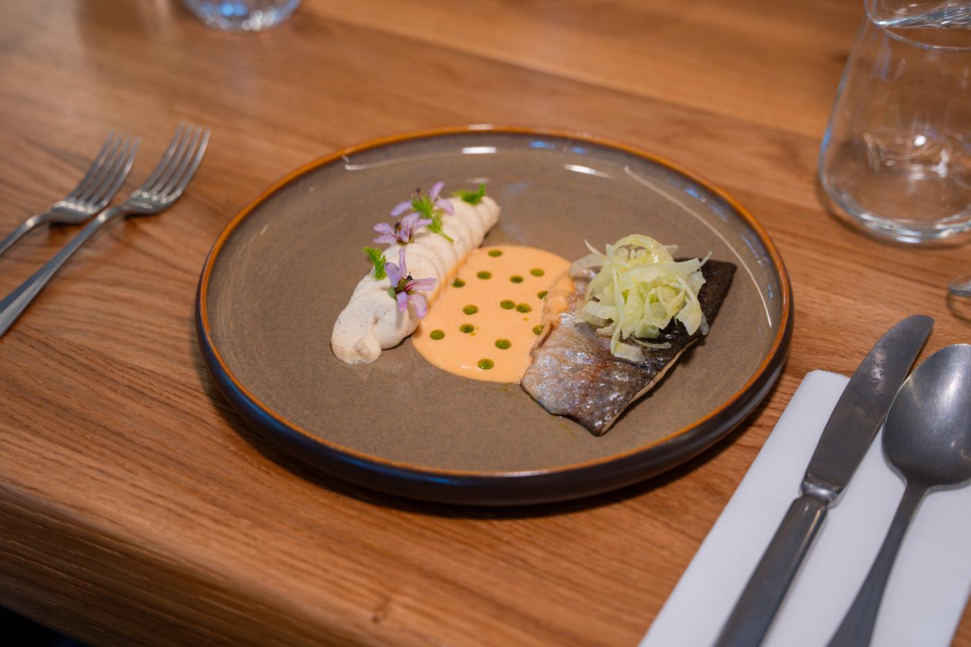 → Ribja glavna jed: file postrvi, omaka choron, pastinak,vanilja, okisan koromač