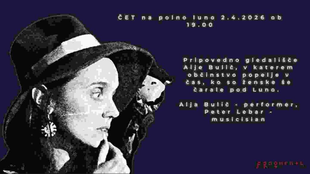 Pod zavetjem Lune je pripovedno gledališče Alje Bulič, v katerem občinstvo popelje v čas, ko so ženske še čarale pod Luno. Potovali bomo od antične Grčije, srednjeveške Evrope do Balkana in širše, med zgodbami, ki so preživele brutalno preganjanje in spet iščejo svoj glas. Pripovedi spremlja ambientalna podoba Petra Lebarja.